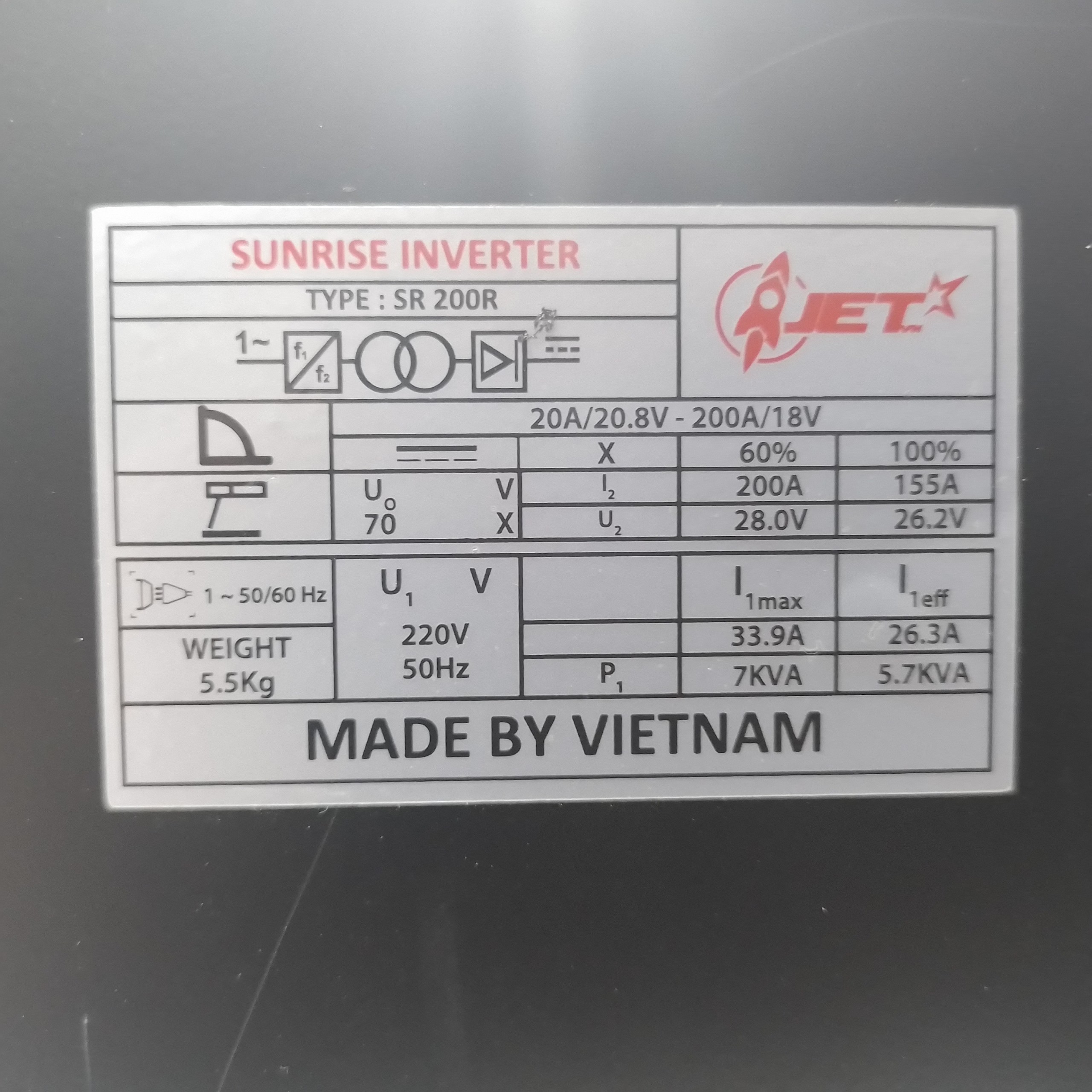 - Dòng điện ra: 20-200A