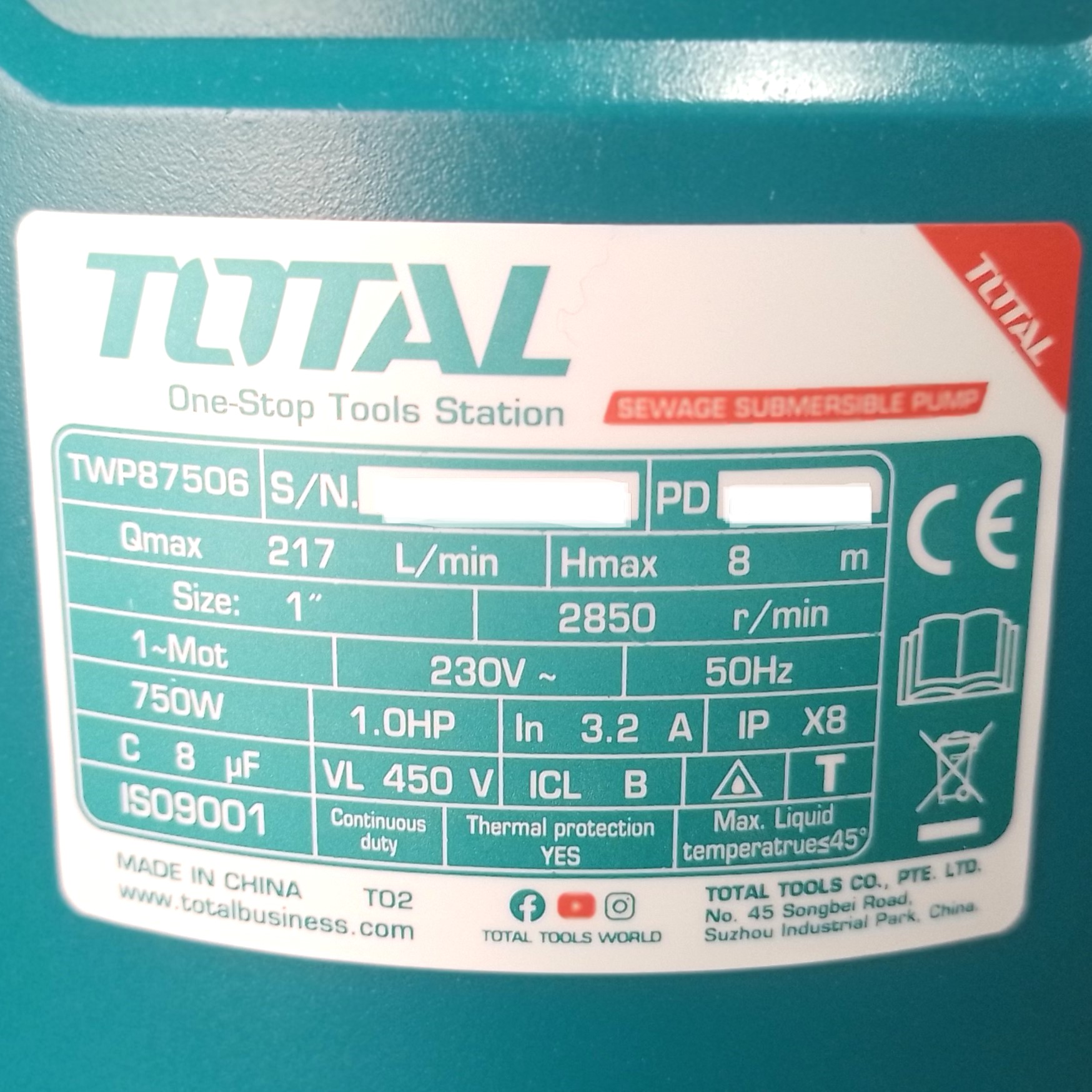 - Công suất: 750W(1.0HP)
